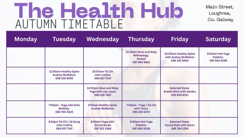 Website: thehealthhubloughrea.ie | Facebook: thehealthhubloughrea